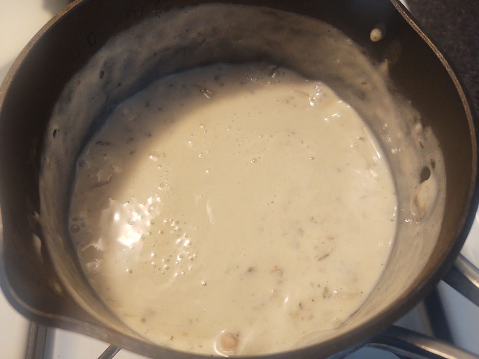 As for the gravy, I opened up and heated up a can of fully loaded baked potato soup. Replacing brown gravy with a can of soup, isn't necessarily the best, but it actually did work out for the best!