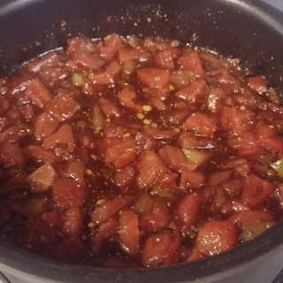 Simply bring a can of diced tomatoes, or diced tomatoes with green chilies, to a simmer. Then toss in a couple splashes of Worcestershire sauce. I like a little bit of Tang so I always put in a couple tablespoons of apple cider vinegar. Honey or brown sugar or agave nectar work great for sweetening it. I season my basic one with salt, black pepper and chili powder. Then you take an immersion blender to it and puree the heck out of it while sprinkling in cornstarch for thickening... More cornstarch means a more thick sauce more sugar means a sweeter sauce more whatever you add it's literally just pureed tomatoes and something sweet and something savory that's all barbecue sauce is...